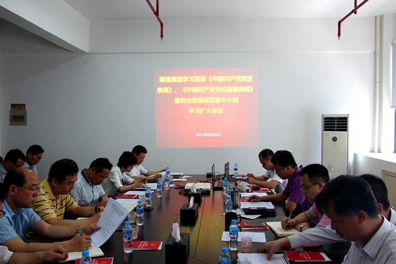為進一步加強廉政文化建設,不斷提高黨員干部廉潔從業(yè)意識,推進廉潔從業(yè)教育工作,以黨風廉潔建設新成效促進綠港集團健康發(fā)展,4月20日上午,綠港集團黨委召開學習貫徹《中國共產(chǎn)黨問責條例》和《中國共產(chǎn)黨黨內(nèi)監(jiān)督條例》(以下簡稱“兩部條例”)宣講報告會暨中心組學習擴大會議,會議由綠港集團黨組書記、董事長楊東主持,經(jīng)開區(qū)紀工委派駐國有公司紀檢組組長李云岳就“兩部條例”進行了宣講,綠港集團全體班子成員、集團本部中層以上管理人員、子公司領導班子約50人參加會議。