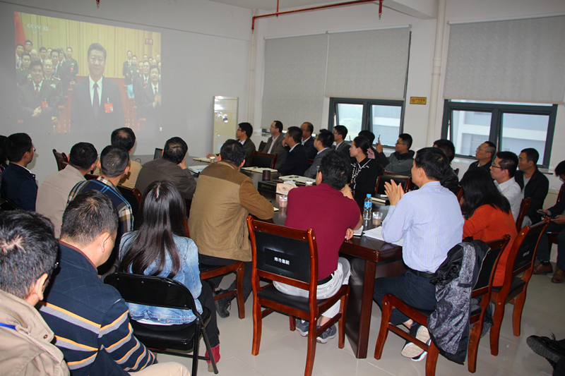 金秋十月,南國(guó)綠城花正艷。10月18日,黨的十九大在北京勝利開幕。當(dāng)日上午9時(shí),綠港集團(tuán)黨委組織集團(tuán)公司領(lǐng)導(dǎo)班子全體成員、董事長(zhǎng)助理、總經(jīng)理助理,各部門、各子公司負(fù)責(zé)人及公司全體黨員,在麗匯大廈415會(huì)議室集中收看中國(guó)共產(chǎn)黨第十九次全國(guó)代表大會(huì)開幕會(huì)直播盛況。全體與會(huì)人員懷著無(wú)比激動(dòng)的心情,聚精會(huì)神,靜靜聆聽,認(rèn)真記錄,不時(shí)爆發(fā)出熱烈的掌聲!在長(zhǎng)達(dá)三個(gè)半小時(shí)的收看過程中,整個(gè)會(huì)場(chǎng)始終保持莊嚴(yán)、肅穆、緊張、熱烈的良好氛圍。