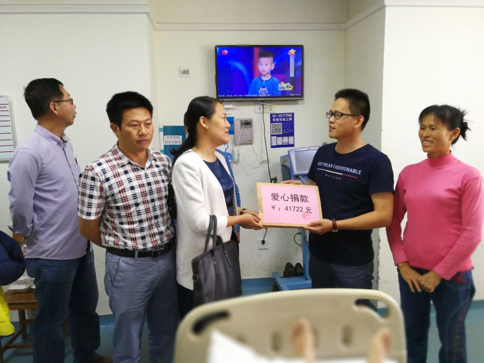 吳海召激動(dòng)地說(shuō):“善款有價(jià),愛(ài)心無(wú)價(jià)。綠港集團(tuán)和經(jīng)開區(qū)的捐款正體現(xiàn)中華民族團(tuán)結(jié)互助的精神和無(wú)私博愛(ài)的優(yōu)良傳統(tǒng),非常感謝所有愛(ài)心人士的熱情幫助”。蒙福東副總經(jīng)理讓家屬們?cè)鰪?qiáng)信心,安心照顧好吳海有,有困難及時(shí)告知公司,綠港集團(tuán)一定盡力協(xié)調(diào)解決,能幫就幫。