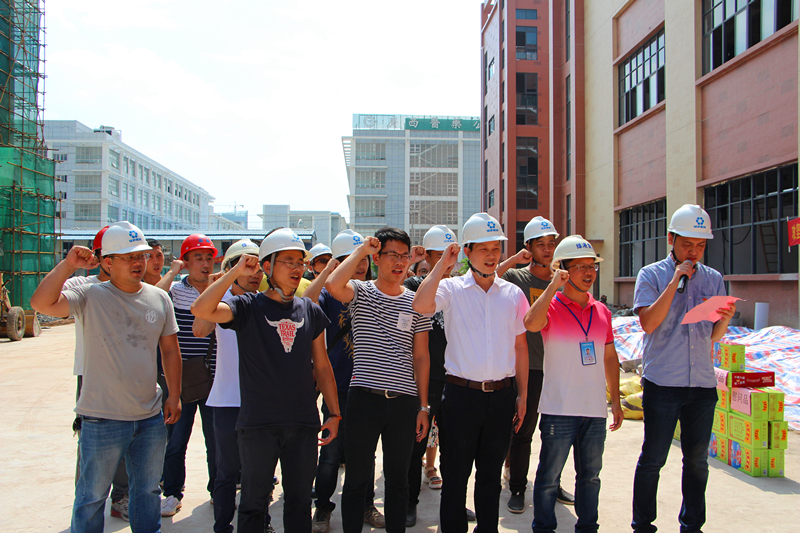 當(dāng)天,驕陽(yáng)似火。綠港集團(tuán)黨委書(shū)記、董事長(zhǎng)、總經(jīng)理龔國(guó)強(qiáng)莊重地給黨員們授予“黨員先鋒隊(duì)”紅旗,給青年突擊隊(duì)員們授予“青年突擊隊(duì)”紅旗,并提出了幾點(diǎn)要求:一是要緊緊圍繞項(xiàng)目建設(shè)開(kāi)展突擊活動(dòng)。全體黨員干部和青年同志要充分發(fā)揚(yáng)不怕吃苦、勇于負(fù)重,敢打硬仗、能打硬仗的優(yōu)良傳統(tǒng),切實(shí)發(fā)揮“黨員先鋒隊(duì)”、“青年突擊隊(duì)”在“急、難、險(xiǎn)、重”任務(wù)中的生力軍作用。二是要把項(xiàng)目建設(shè)與錘煉黨員意志相結(jié)合。黨員干部和青年同志們要充分發(fā)揮模范帶頭作用,深入項(xiàng)目一線,了解項(xiàng)目建設(shè)困難,想方設(shè)法協(xié)調(diào)解決。要在項(xiàng)目建設(shè)中增強(qiáng)本領(lǐng)、錘煉意志、增強(qiáng)黨性,更好的服務(wù)入?yún)^(qū)企業(yè)建設(shè)發(fā)展。三是要充分發(fā)揮“黨建帶團(tuán)建”作用?!包h員先鋒隊(duì)”要引導(dǎo)和指導(dǎo)好“青年突擊隊(duì)”開(kāi)展好項(xiàng)目建設(shè),黨員干部與青年同志們要相互關(guān)心,密切配合,充分發(fā)揮整體功能和團(tuán)隊(duì)精神,確保瑞聲廠房項(xiàng)目能在6月25日完工交付9號(hào)廠房、7月25日完工交付3、13號(hào)廠房的任務(wù)目標(biāo)。