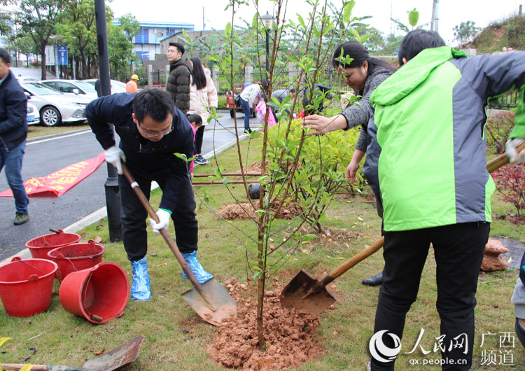 人民網(wǎng)南寧3月11日電 陽春三月,萬物復(fù)蘇,生機(jī)勃發(fā)。3月9日,細(xì)雨紛飛,春寒料峭,但是南寧經(jīng)開區(qū)的綠港·國際中心卻人潮涌動(dòng),愛意濃濃。原來,南寧綠港集團(tuán)正在舉行“情暖童心·攜手植綠”學(xué)雷鋒志愿服務(wù)月活動(dòng),200多名職工和家屬一起參加了當(dāng)天的愛心義賣、愛心捐贈和義務(wù)植樹活動(dòng)。