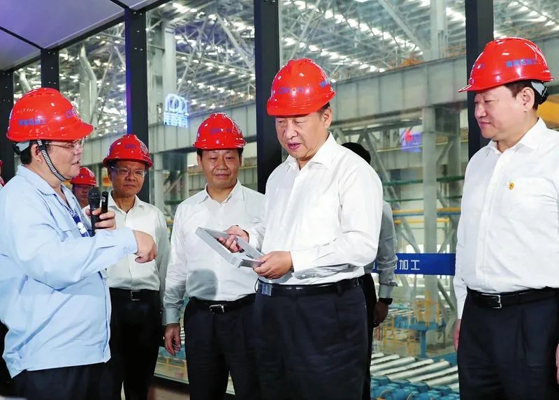 2017年4月19日至21日,中共中央總書記、國家主席、中央軍委主席習(xí)近平在廣西視察。這是2017年4月20日上午,習(xí)近平在廣西南南鋁加工有限公司了解企業(yè)生產(chǎn)情況。 新華社記者 謝環(huán)馳 攝