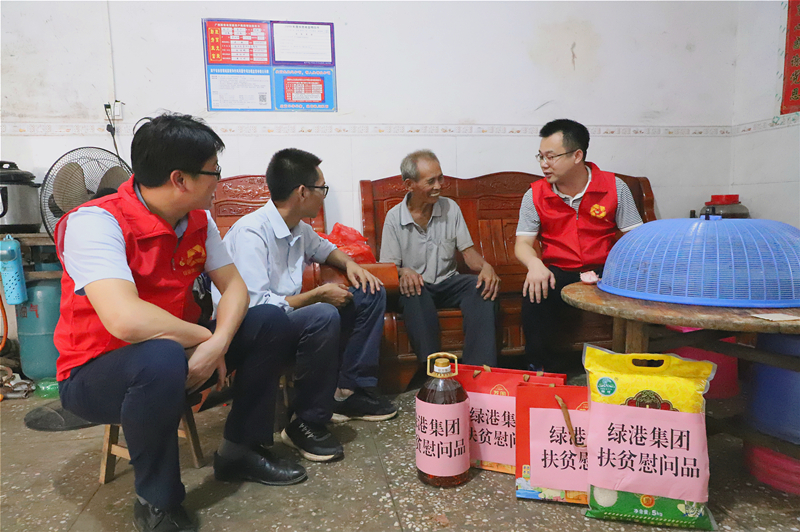 綠港集團黨委書記、董事長龔國強,黨委副書記、總經理鄧繼慧在貧困戶梁承營家開展慰問(王振霖 圖)